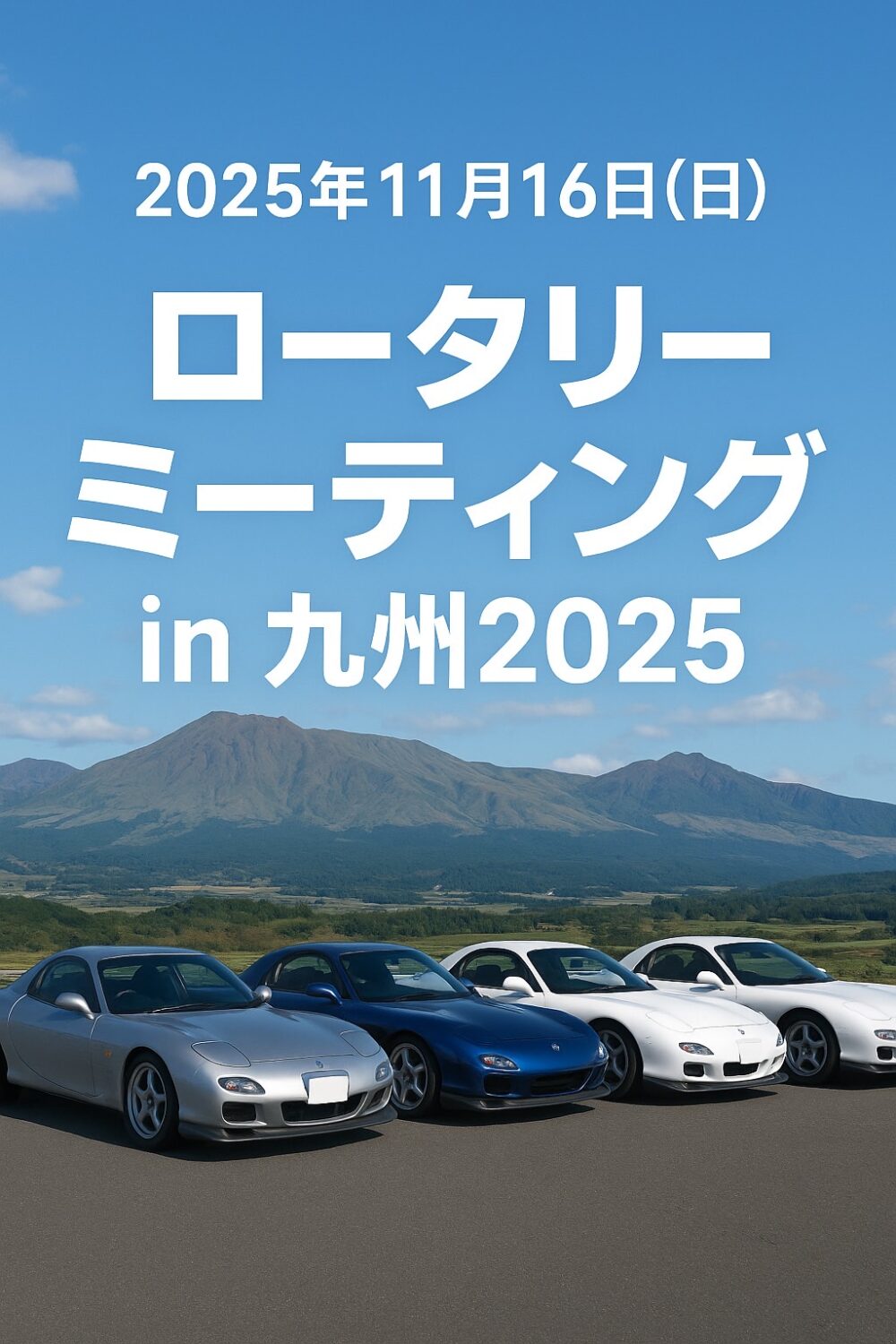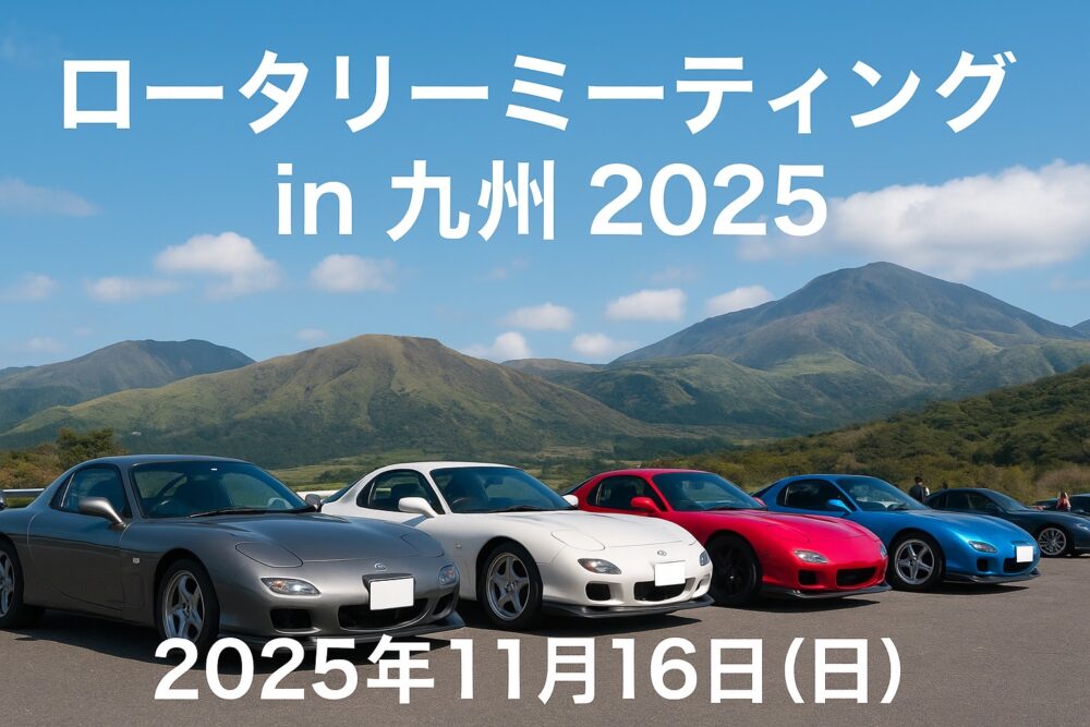 九州のロータリーファンが集う特別な日、「ロータリーミーティングin九州2025」が今年も開催されます! 阿蘇・瀬の本高原を舞台に、ロータリーエンジンを愛するオーナーたちが全国から集結。 今年の開催日は2025年11月16日(日)です。