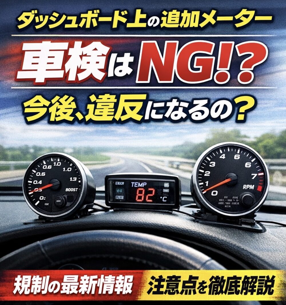 ダッシュボード上の追加メーターは条件次第で車検OKだが、配置や固定方法を間違えるとNG。